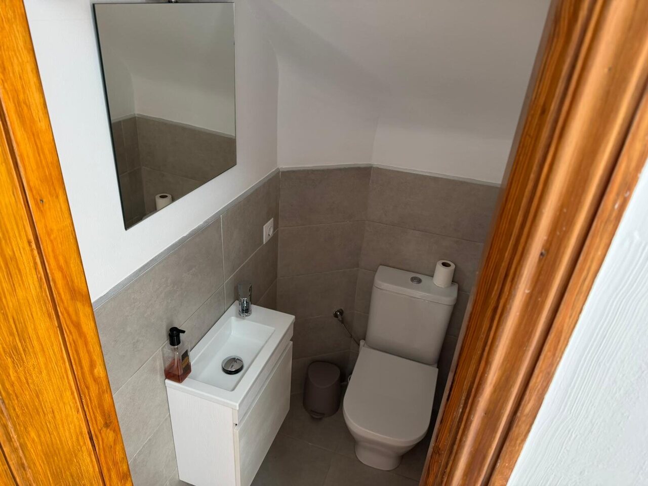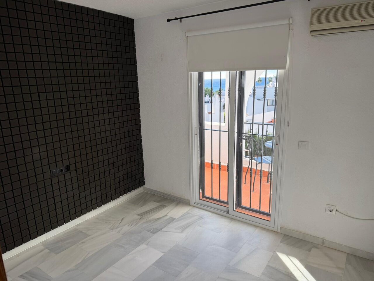 Chambre 2 : Chambre de taille moyenne avec une grande armoire à 2 portes, une porte entièrement miroir. Des portes-fenêtres coulissantes menant à une petite terrasse et un escalier en colimaçon menant au solarium sur le toit. De magnifiques vues sur la mer.